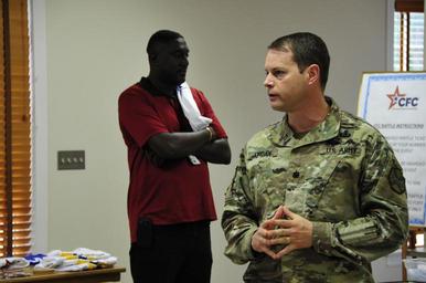 | Keywords: fort a. p. hill fortaphill faph chili cook off chilicookoff people LTC Andrew Jordan, garrison commander, USAG Fort A.P. Hill, kicked off the 2016 Combined Federal Campaign today with a Chili Cook Off at Romenick Hall. The first place winner was Marcie Norris of the Logistics Readiness Center; second place, Cindy Tate, Fort A.P. Hill Fire Dept.; and, third, Kay Hummel, Resource Management Office. LTC Andrew Jordan, garrison commander, USAG Fort A.P. Hill, kicked off the 2016 Combined Federal Campaign today with a Chili Cook Off at Romenick Hall. The first place winner was Marcie Norris of the Logistics Readiness Center; second place, Cindy Tate, Fort A.P. Hill Fire Dept.; and, third, Kay Hummel, Resource Management Office. |