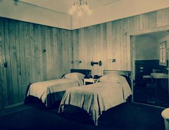 | Keywords: indoor room 208-PU-Folder 3b: Roosevelt’s Shangri-La in Maryland Mountains, Thurmont, Maryland. Seventy miles away from the nation’s capital hidden in the Catoctin Mountains was President Roosevelt’s “Shangri-La.” It was his weekend retreat = kept secret until after the war. It was build during the Depression 30’s and was originally one of the three unpretentious public resorts in the National Park. Less than a mile away is Catoctin Furnace where Revolutionary troops forged cannon balls for the Battle of Yorktown. Photo shows: A unidentified bedroom and bath. Office of War Information Collection. (2016/08/30). 208-PU-Folder 3b: Roosevelt’s Shangri-La in Maryland Mountains, Thurmont, Maryland. Seventy miles away from the nation’s capital hidden in the Catoctin Mountains was President Roosevelt’s “Shangri-La.” It was his weekend retreat = kept secret until after the war. It was build during the Depression 30’s and was originally one of the three unpretentious public resorts in the National Park. Less than a mile away is Catoctin Furnace where Revolutionary troops forged cannon balls for the Battle of Yorktown. Photo shows: A unidentified bedroom and bath. Office of War Information Collection. (2016/08/30). |