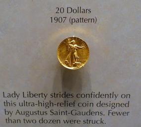 | Keywords: 20 Dollars, United States, 1907 pattern, by Augustus Saint-Gaudens, view 1 - National Museum of American History - DSC00240.jpg en Exhibit in the National Museum of American History Washington DC USA Photography was permitted in the museum without restriction 2015-03-27 11 34 19 own Daderot other versions cc-zero Coins in the National Museum of American History Double Eagle United States | ||||