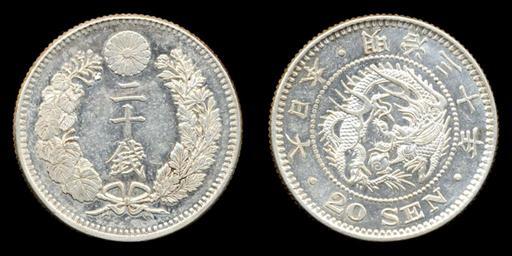 Keywords: 20sen-M30.jpg en 20sen-M30 ja 20éŠéŠ è²¨å¹£æ˜Žæ²»30å¹´ Own As6673 2009-09-11 Silver coins in Meiji era