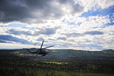 | Keywords: 210th Rescue Squadron 130710-D-FZ583-363.jpg en An Alaska Air National Guard HH-60 Pave Hawk from the 210th Rescue Squadron performs a simulated search and rescue pattern near the Little Susitna River in Alaska The primary mission of the HH-60G Pave Hawk helicopter is to conduct day or night personnel recovery operations into hostile environments to recover isolated personnel during war The HH-60G is also tasked to perform military operations other than war including civil search and rescue medical evacuation disaster response humanitarian assistance security cooperation/aviation advisory NASA space flight support and rescue command and control Features The Pave Hawk is a highly modified version of the Army Black Hawk helicopter which features an upgraded communications and navigation suite that includes integrated inertial navigation/global positioning/Doppler navigation systems satellite communications secure voice and have quick communications All HH-60Gs have an automatic flight control system night vision goggles with lighting and forward looking infrared system that greatly enhances night low-level operations Additionally Pave Hawks have color weather radar and an engine/rotor blade anti-ice system that gives the HH-60G an adverse weather capability Pave Hawk mission equipment includes a retractable in-flight refueling probe internal auxiliary fuel tanks two crew-served 7 62 mm or 50-caliber machine guns and an 8 000-pound 3 600 kilograms capacity cargo hook Photo by Lt Bernie Kale <br>Unit Alaska National Guard Public Affairs 2013-07-10 George Kale https //www dvidshub net/image/1525601/210th-rescue-squadron 130710-D-FZ583-363 2014-08-27 17 56 JOINT BASE ELMENDORF-RICHARDSON AK US PD-USGov Joint Base Elmendorf-Richardson Night vision equipment Images from DoD uploaded by Fæ |