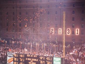 | Keywords: 2131 on the warehouse wall.jpg The numbers on the Orioles' warehouse changed from 2130 to 2131 on Sept 6 1995 to celebrate Cal Ripken Jr passing Lou Gehrig's consecutive games played streak 2007-05-18 own Hetty Cassutto Haden Hettepop en Original upload log en wikipedia FtCG page en wikipedia 2131_on_the_warehouse_wall jpg wikitable Date/Time Dimensions User Comment - 03 29 18 May 2007 500 × 376 132 226 bytes Hettepop w en <nowiki> The numbers on the Orioles' warehouse changed from 2130 to 2131 on Sept 5 1991 to celebrate Cal Ripken Jr passing Lou Gehrig's consecutive games played streak ¦~~~~ </nowiki> Cal Ripken Jr Baltimore and Ohio Warehouse 1995 in Major League Baseball 1995 in Maryland Baltimore in the 1990s |