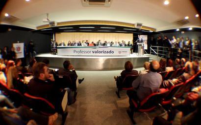 | Keywords: reajuste dos professores indoor Deputados prestigiam a sanção da lei nº. 681/11, pelo governador Beto Richa. A lei, aprovada pela Assembleia no dia 30 de agosto, concede um reajuste salarial de 5,91% para professores ativos e aposentados da rede estadual de ensino. O evento ocorreu no Palácio das Araucárias, e contou com a presença dos deputados: Valdir Rossoni (presidente), Plauto Miró (1º secretário), Ademar Traiano (líder do Governo), Rose Litro, Mara Lima, Marcelo Rangel, Augustinho Zucchi, Duílio Genari, Professor Lemos, Teruo Kato e Hermas Junior. Foto: Nani Gois/Alep (crédito obrigatório) Deputados prestigiam a sanção da lei nº. 681/11, pelo governador Beto Richa. A lei, aprovada pela Assembleia no dia 30 de agosto, concede um reajuste salarial de 5,91% para professores ativos e aposentados da rede estadual de ensino. O evento ocorreu no Palácio das Araucárias, e contou com a presença dos deputados: Valdir Rossoni (presidente), Plauto Miró (1º secretário), Ademar Traiano (líder do Governo), Rose Litro, Mara Lima, Marcelo Rangel, Augustinho Zucchi, Duílio Genari, Professor Lemos, Teruo Kato e Hermas Junior. Foto: Nani Gois/Alep (crédito obrigatório) |