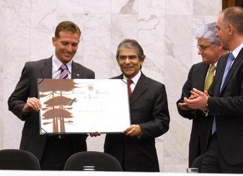 | Keywords: cidadão honorário cidadãohonorário ayres britto ayresbritto people groupshot Em solenidade realizada nesta segunda-feira (21), às 18h30, a Assembleia Legislativa entregou o título de Cidadão Honorário do Paraná ao ministro Carlos Augusto Ayres de Freitas Britto, vice-presidente do Supremo Tribunal Federal (STF). O evento aconteceu no Plenário, por iniciativa do deputado Fábio Camargo (PTB). Ao justificar a homenagem, seu autor lembrou que Ayres Britto presidiu o Tribunal Superior Eleitoral (TSE) no período 2008/2010 e atuou para democratizar as eleições municipais ao viabilizar a contratação de servidores concursados para administrar o pleito, em lugar dos indicados dos prefeitos. Leia mais: www.alep.pr.gov.br/imprensa/noticias/noticia/20684/assemb... Foto: Nani Gois/Alep (crédito obrigatório) Em solenidade realizada nesta segunda-feira (21), às 18h30, a Assembleia Legislativa entregou o título de Cidadão Honorário do Paraná ao ministro Carlos Augusto Ayres de Freitas Britto, vice-presidente do Supremo Tribunal Federal (STF). O evento aconteceu no Plenário, por iniciativa do deputado Fábio Camargo (PTB). Ao justificar a homenagem, seu autor lembrou que Ayres Britto presidiu o Tribunal Superior Eleitoral (TSE) no período 2008/2010 e atuou para democratizar as eleições municipais ao viabilizar a contratação de servidores concursados para administrar o pleito, em lugar dos indicados dos prefeitos. Leia mais: www.alep.pr.gov.br/imprensa/noticias/noticia/20684/assemb... Foto: Nani Gois/Alep (crédito obrigatório) |