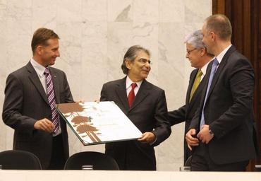 Keywords: cidadão honorário cidadãohonorário ayres britto ayresbritto indoor Em solenidade realizada nesta segunda-feira (21), às 18h30, a Assembleia Legislativa entregou o título de Cidadão Honorário do Paraná ao ministro Carlos Augusto Ayres de Freitas Britto, vice-presidente do Supremo Tribunal Federal (STF). O evento aconteceu no Plenário, por iniciativa do deputado Fábio Camargo (PTB). Ao justificar a homenagem, seu autor lembrou que Ayres Britto presidiu o Tribunal Superior Eleitoral (TSE) no período 2008/2010 e atuou para democratizar as eleições municipais ao viabilizar a contratação de servidores concursados para administrar o pleito, em lugar dos indicados dos prefeitos. Leia mais: www.alep.pr.gov.br/imprensa/noticias/noticia/20684/assemb... Foto: Nani Gois/Alep (crédito obrigatório) Em solenidade realizada nesta segunda-feira (21), às 18h30, a Assembleia Legislativa entregou o título de Cidadão Honorário do Paraná ao ministro Carlos Augusto Ayres de Freitas Britto, vice-presidente do Supremo Tribunal Federal (STF). O evento aconteceu no Plenário, por iniciativa do deputado Fábio Camargo (PTB). Ao justificar a homenagem, seu autor lembrou que Ayres Britto presidiu o Tribunal Superior Eleitoral (TSE) no período 2008/2010 e atuou para democratizar as eleições municipais ao viabilizar a contratação de servidores concursados para administrar o pleito, em lugar dos indicados dos prefeitos. Leia mais: www.alep.pr.gov.br/imprensa/noticias/noticia/20684/assemb... Foto: Nani Gois/Alep (crédito obrigatório)