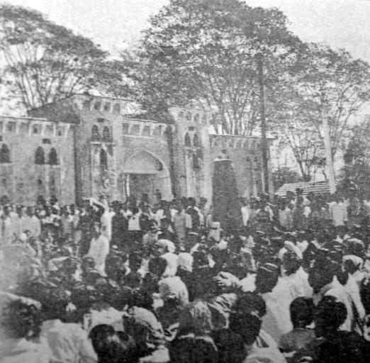 Keywords: 21 feb 1952 DecideToBreak Curfew.JPG 21 feb 1952 After the decision for breaking Curfew Author Album 1952-02-21 Rofiqul Islam PD-Pakistan Bengali Language Movement Curfews