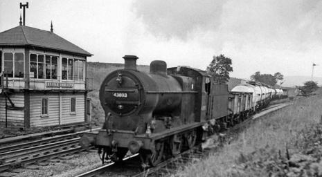| Keywords: blackandwhite monochrome vehicle train steam engine outdoor locomotive railroad black and white Settle Junction, 1962, with Up ammonia tank empties, with ex-Midland 4F 0-6-0 No. 43893. Attribution: Ben Brooksbank Settle Junction, 1962, with Up ammonia tank empties, with ex-Midland 4F 0-6-0 No. 43893. Attribution: Ben Brooksbank |
