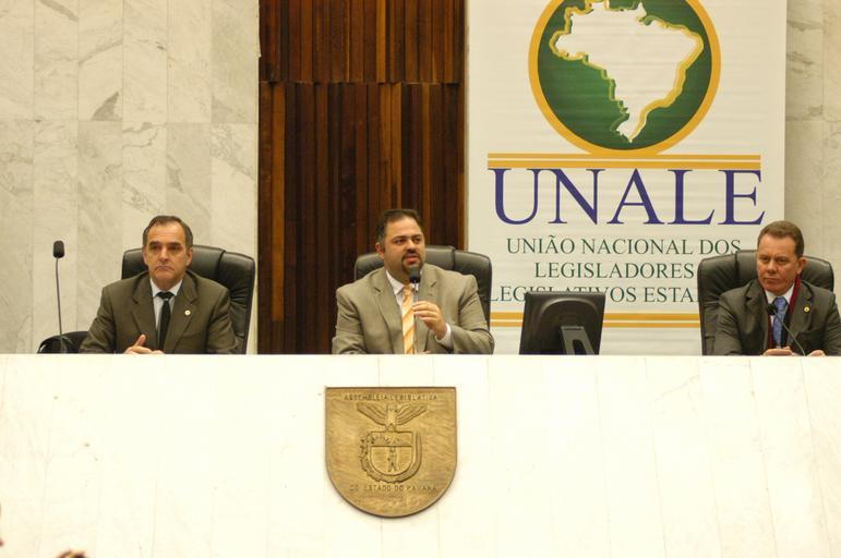 Keywords: unale assembleia legislativa do paraná assembleialegislativadoparaná artagão jr artagãojr groupshot people indoor O presidente em exercício da Assembleia Legislativa do Paraná e vice-presidente da União Nacional dos Legisladores e Legislativos Estaduais (Unale), deputado Artagão de Mattos Leão Jr. (PMDB), foi o anfitrião da reunião ordinária da Unale, na manhã desta segunda-feira (22), no Plenário da Casa. Entre outros temas, os parlamentares discutiram a revisão do pacto federativo, um tema polêmico na opinião de Mattos Leão Jr., para quem o Poder Legislativo foi “perdendo espaço” nos últimos anos. Participaram da reunião deputados de vários estados brasileiro. Leia mais: igre.me/5xuyb Foto: Sandro Nascimento/Alep (crédito obrigatório). O presidente em exercício da Assembleia Legislativa do Paraná e vice-presidente da União Nacional dos Legisladores e Legislativos Estaduais (Unale), deputado Artagão de Mattos Leão Jr. (PMDB), foi o anfitrião da reunião ordinária da Unale, na manhã desta segunda-feira (22), no Plenário da Casa. Entre outros temas, os parlamentares discutiram a revisão do pacto federativo, um tema polêmico na opinião de Mattos Leão Jr., para quem o Poder Legislativo foi “perdendo espaço” nos últimos anos. Participaram da reunião deputados de vários estados brasileiro. Leia mais: igre.me/5xuyb Foto: Sandro Nascimento/Alep (crédito obrigatório).