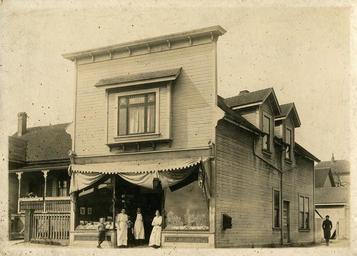 | Keywords: photo border Shop on the SW corner of Victoria Road and Kennedy Street in Nanaimo, BC on Vancouver Island. Building extant though remodeled. Shop on the SW corner of Victoria Road and Kennedy Street in Nanaimo, BC on Vancouver Island. Building extant though remodeled. |