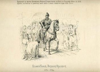 | Keywords: 24 History of the Russian state in the image of its sovereign rulers.jpg ru Великий Князь ихаил Ю ьевич 1174-1176 г <br>П изванный на п естол Боголюбского ихаил II то жественно вступил во Владими Живя в веке су овом жестокостью не запятнал имени своего и любил спокойствие на ода более власти full 24 History of the Russian state in the image of its sovereign rulers - fragment jpg Michael I of Vladimir | ||||
