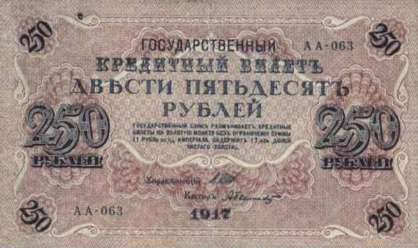 | Keywords: 250 рублей 1917 года. Аверс.png 250 ублей Россия Аве с В еменное п авительство России 1917 http //www russian-money ru/ PD-RusEmpire 1917 currency Original upload log ru wikipedia ftcg page ru wikipedia 250_ D1 80 D1 83 D0 B1 D0 BB D0 B5 D0 B9_1917_ D0 B3 D0 BE D0 B4 D0 B0 _ D0 90 D0 B2 D0 B5 D1 80 D1 81 png wikitable - 12 30 12 October 2010 533 × 317 306 448 bytes Knyaz-1988 w ru <nowiki> К аткое описание Изоб ажение Описание 250 ублей Россия Аве с Авто Цент обанк РСФСР В емя создания 1917 г Источник</nowiki> Banknotes of Russia 1917 Banknotes with a face value of 250 |