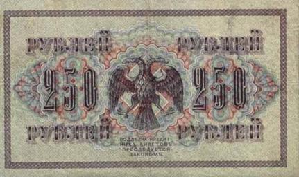 | Keywords: 250 рублей 1917 года. Реверс.png 250 ублей Россия Реве с В еменное п авительство России 1917 http //www russian-money ru/ PD-RusEmpire 1917 currency Original upload log ru wikipedia ftcg page ru wikipedia 250_ D1 80 D1 83 D0 B1 D0 BB D0 B5 D0 B9_1917_ D0 B3 D0 BE D0 B4 D0 B0 _ D0 A0 D0 B5 D0 B2 D0 B5 D1 80 D1 81 png wikitable - 12 30 12 October 2010 532 × 316 312 370 bytes Knyaz-1988 w ru <nowiki> К аткое описание Изоб ажение Описание 250 ублей Россия Реве с Авто Цент обанк РСФСР В емя создания 1917 г Источни</nowiki> Banknotes of Russia 1917 Banknotes with a face value of 250 Swastikas on banknotes |