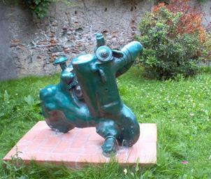 | Keywords: 25 Aprile in Lambretta.jpg scultura in acciaio e conglomerato di pietra dimensione max 155 cm collocata nel giardino Mezzano di Celle Ligure in occasione del 25 Aprile 2005 anniversario della Liberazione dai nazifascisti Celle Ligure 2005 PD-self GFDL Cc-by-sa-3 0-migrated Commento generale del critico sulla scultura di Lupo Rosso La scultura ricerca di soluzioni tecniche e rappresentazione delle emozioni Gran parte delle conversazioni sulla scultura avute con il maestro è stata spesa intorno a problemi relativi alla specifica ricerca di alchimistiche combinazioni tra materiali lapidei oppure sui vizi e le virtù delle pietre naturali le più e le meno pregiate come quelle più o meno lavorabili e ancora su complessi studi per ottenere l ™effetto del bronzo lavorando la pietra e così via Questi racconti avvincenti che spiegano il nucleo della ricerca di Alfonso Gialdini si dirigono poi abitualmente verso l ™affascinante rievocazione della volta in cui riuscì a procurarsi per farci una scultura uno splendido e unico blocco di legno tek -forse l ™albero di un ™antica nave o la trave di una vetusta costruzione- o di quando trovò in natura un piccolo e circoscritto giacimento di pietra da lavorare Il suo ufficio domestico separato dall ™officina in cui scolpisce ricorda un piccolo studiolo rinascimentale dove innumerevoli componenti si uniscono in un insieme unitario e indecifrabile arnesi curiosità fossili miniature fogli disposti ordinatamente in perfetto disordine  Evidentemente dello scultore genovese accanto alla priorità di una vivida umanità emerge il sostrato dei suoi compiuti studi di ingegneria meccanica che lo portano a legare fortemente l ™azione creativa e ideativa in lui libera e sensibilmente emotiva con i meccanismi di controllo e programmazione propri del metodo scientifico Il risultato è sorprendente perché si rivela capace tanto di far comprendere le virtù tecnico-costruttive della scultura quanto di trasportarci con immediatezza nel mondo delle idee e delle emozioni L ™artista investe sia in scultura figurativa sia in opere di ricerca dinamica astrattamente formali scolpisce in sintesi seguendo un ™ispirazione di tipo sintetico-antropomorfo  L ™oggetto principale del suo studio è la rappresentazione della figura femminile proposta in numerose varianti di sensibilità ferina Venere steatopigica di sapore tribale o esile ma monumentale tuffatrice sospesa per aria Ancora fatta tutta di membra calda protettrice dell ™uomo che avvolge con forti abbracci o fiera sostenitrice del primario contributo femminile alla vita quando non ambisce a suonare con il proprio corpo come la cassa armonica del violino L ™alternativa per il maestro sono le teste di cavallo naturalistiche rappresentazioni di colli nervosi negli studi per sé o dinamiche e forti macchine belliche come locomotive in corsa con le redine che diventano bielle cavalli che sono il simbolo della corsa alla liberazione dei popoli bestie forti e docili che stramazzano sacrificandosi di fronte a un ingiusto e violento trattamento del padrone Il Rompighiaccio sul tema-studio delle teste di ariete rappresenta ancora questa tensione potente difficilmente governabile lanciata verso un destino mortale A Genova il maestro dal 1995 mette a disposizione dei degenti dell ™ex ospedale psichiatrico di Quarto i propri mezzi e conoscenze organizzando corsi di scultura all ™interno di un programma di riabilitazione espressiva ottiene particolari successi nel veder migliorare anche attraverso questa esperienza la condizione degli allievi Marco Franzone saggista in storia arte genovese Antifascist resistance in Italy Italian resistance movement Art in Celle Ligure |