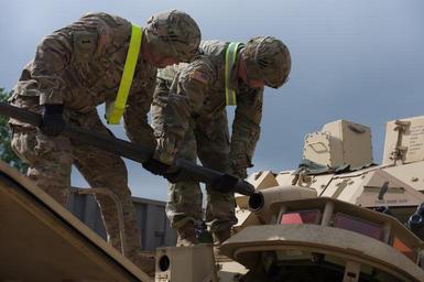 | Keywords: noble partner noblepartner army usareur u.s. army usarmy u.s. army europe usarmyeurope tanks war cannon 3id outdoor VAZIANI TRAINING AREA, Georgia — Two Soldiers assigned to 1st Battalion., 64th Armor Regiment, 1st Brigade, 3rd Infantry Division, inspect and attach a 25mm gun barrel to a Bradley Infantry Fighting Vehicle at Vaziani Training Area, Georgia, May 6, in preparation for Noble Partner 16. The exercise is scheduled to take place May 11 to 26 and will include approximately 1300 participants from the U.S., Georgia and the U.K. The exercise is a reoccurring training event that takes place at Vaziani Training Area, Georgia. Noble Partner 16 is a critical part of Georgia's training for its contribution of a light infantry company to the NATO Response Force (NRF) and enhances Georgian territorial self-defense capability. (Photo by Sgt. Daniel Cole, U.S. Army Europe Public Affairs) VAZIANI TRAINING AREA, Georgia — Two Soldiers assigned to 1st Battalion., 64th Armor Regiment, 1st Brigade, 3rd Infantry Division, inspect and attach a 25mm gun barrel to a Bradley Infantry Fighting Vehicle at Vaziani Training Area, Georgia, May 6, in preparation for Noble Partner 16. The exercise is scheduled to take place May 11 to 26 and will include approximately 1300 participants from the U.S., Georgia and the U.K. The exercise is a reoccurring training event that takes place at Vaziani Training Area, Georgia. Noble Partner 16 is a critical part of Georgia's training for its contribution of a light infantry company to the NATO Response Force (NRF) and enhances Georgian territorial self-defense capability. (Photo by Sgt. Daniel Cole, U.S. Army Europe Public Affairs) |