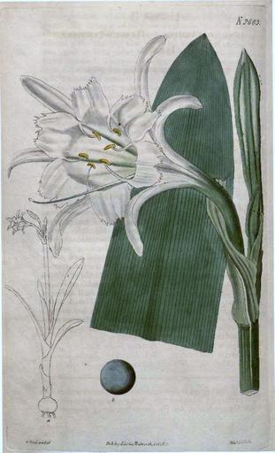 Keywords: 2685 Ismene narcissiflora.jpg la Ismene narcissiflora Curtis's Botanical Magazine 53 t 2685 As Ismene calathina Curtis 1826 PD-Art Ismene narcissiflora Curtis's Botanical Magazine Volume 53