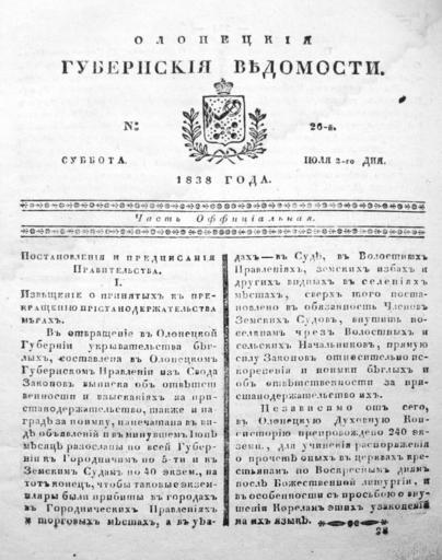 | Keywords: «Олонецкие губернские ведомости» №26 за 1838 г.jpg ru Пе вая ст аница номе а 26 газеты Олонецкие губе нские ведомости за 1838 г 1838 номе 26 газеты Олонецкие губе нские ведомости за 1838 г губе нское п авление в го оде Пет озаводске PD-old-100 Original upload log ru wikipedia ftcg page ru wikipedia C2 AB D0 9E D0 BB D0 BE D0 BD D0 B5 D1 86 D0 BA D0 B8 D0 B5_ D0 B3 D1 83 D0 B1 D0 B5 D1 80 D0 BD D1 81 D0 BA D0 B8 D0 B5_ D0 B2 D0 B5 D0 B4 D0 BE D0 BC D0 BE D1 81 D1 82 D0 B8 C2 BB_ E2 84 9626_ D0 B7 D0 B0_1838_ D0 B3 jpg wikitable - 12 49 13 July 2007 1 024 × 1 299 203 271 bytes Алексей Голубев w ru <nowiki>Пе вая ст аница номе а 26 газеты Олонецкие губе нские ведомости за 1838 г </nowiki> Olonetskie gubernskie vedomosti 1838 |
