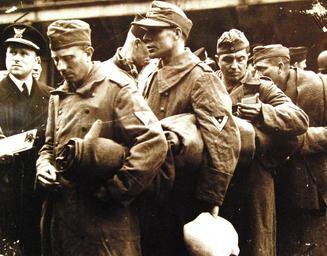 | Keywords: people sculpture statue 26-G-2577: Normandy Invasion, June 1944. German Prisoners aboard Coast-Guard Manned Transport. Nazi prisoners, captured in the furious fighting in Normandy, board a Coast Guard transport at an unidentified Allied port as they sail for the United States and internment until the war is over. Coast Guard Lieutenant Junior Grade R. J. Campbell, Jr., keeps the line moving, June 1944. (5/19/2015). 26-G-2577: Normandy Invasion, June 1944. German Prisoners aboard Coast-Guard Manned Transport. Nazi prisoners, captured in the furious fighting in Normandy, board a Coast Guard transport at an unidentified Allied port as they sail for the United States and internment until the war is over. Coast Guard Lieutenant Junior Grade R. J. Campbell, Jr., keeps the line moving, June 1944. (5/19/2015). |