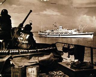 | Keywords: 26-G-3708_Box 70_1: Invasion of Leyte, Philippines, 20 October 1944. Mercy Ship Leaves the Maelstrom. From embattled Leyte Island, an American hospital ship moves serenely across the bow of Coast-Guard-manned LST. Marked with the Red Cross and painted white, this mercy ship carries wounded American fighting men away from the flaming central Philippines. Equipped with the finest surgical facilities and staffed with doctors and nurses, the hospital ship saves lives and starts casualties on the recovery road even as it leaves the zone of conflict. U.S. Coast Guard photograph, now in the collections of the National Archives. (2015/12/15). 26-G-3708_Box 70_1: Invasion of Leyte, Philippines, 20 October 1944. Mercy Ship Leaves the Maelstrom. From embattled Leyte Island, an American hospital ship moves serenely across the bow of Coast-Guard-manned LST. Marked with the Red Cross and painted white, this mercy ship carries wounded American fighting men away from the flaming central Philippines. Equipped with the finest surgical facilities and staffed with doctors and nurses, the hospital ship saves lives and starts casualties on the recovery road even as it leaves the zone of conflict. U.S. Coast Guard photograph, now in the collections of the National Archives. (2015/12/15). |