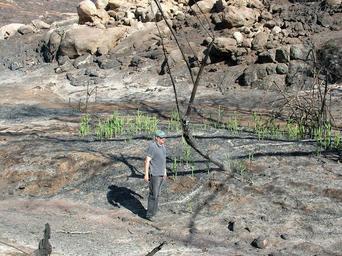 | Keywords: wildfires california ca usgs outdoor Two weeks after the fires, USGS videographer Steve Wessells stands near invasive plants in Bureau of Land Management land, Dulzura Creek, Harris Fire. www.usgs.gov/hazards/wildfires/ca/ Two weeks after the fires, USGS videographer Steve Wessells stands near invasive plants in Bureau of Land Management land, Dulzura Creek, Harris Fire. www.usgs.gov/hazards/wildfires/ca/ | ||||
