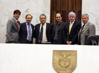 | Keywords: andré bueno andrébueno augustinho zucchi augustinhozucchi joão vicente goulart joãovicentegoulart valdir rossoni valdirrossoni fernando scanavaca fernandoscanavaca people groupshot A Assembleia Legislativa prestou homenagem póstuma ao ex-presidente da República João Belchior Marques Goulart, nesta terça-feira (27), durante sessão plenária. Jango, como era conhecido, foi presidente da República entre setembro de 1961 a março de 1964, após a renúncia do presidente Jânio Quadros. O ex-deputado estadual João Vicente Goulart, filho do ex-presidente, participou da solenidade. Foto: Nani Gois/Alep (crédito obrigatório) A Assembleia Legislativa prestou homenagem póstuma ao ex-presidente da República João Belchior Marques Goulart, nesta terça-feira (27), durante sessão plenária. Jango, como era conhecido, foi presidente da República entre setembro de 1961 a março de 1964, após a renúncia do presidente Jânio Quadros. O ex-deputado estadual João Vicente Goulart, filho do ex-presidente, participou da solenidade. Foto: Nani Gois/Alep (crédito obrigatório) |