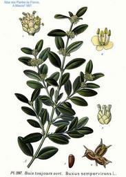 Keywords: 287 Buxus sempervirens L.jpg Buxus sempervirens L Atlas des plantes de France 1891 2001-01-31 Creator Amédée Masclef Reproduction of a painting that is in the public domain because of its age PD-old-70-1923 Atlas des plantes de France