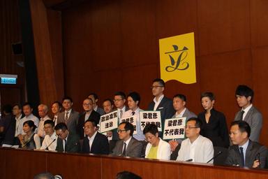 | Keywords: 香港本土議員宣誓風波上演政治對決大戲 28.jpg zh-tw 香港立法 10 26日上演驚人政治大戲(美 之音海彥拍 ) 親中建制派上 三製 立法 流 阻止 年新政梁頌恆和遊蕙禎再次宣誓,並政治施壓 迫立法 主席梁君彥改變自己先前裁定,宣布押後兩人宣誓後,10 26日的立法 大 成為外界 注的焦點 同聲譴責梁君彥讓政治凌駕法律的 建制派議員, 三上午組成人鏈,成功護 梁頌恆和遊蕙禎 入議事大廳要求宣誓,但 終梁君彥以無法恢復 議廳秩序為由宣布休 ,再次阻止兩人宣誓 2016-10-26 12 23 18 http //www voachinese com/a/localist-legislators-fail-to-swear-20161026/3566630 html 海彥 other versions Custom license marker 2016 11 06 PD-USGov-VOA Hong Kong LegCo members' oath-taking controversy | ||||