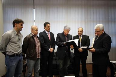 | Keywords: paranhos ademar traiano ademartraiano plauto miró plautomiró valdir rossoni valdirrossoni orçamento ppa A proposta do Orçamento do Estado para o exercício de 2012 e o Plano Plurianual (PPA) para 2012/2015 foram entregues pelo chefe da Casa Civil, Durval Amaral, nesta quinta-feira (29), ao presidente da Assembleia Legislativa, deputado Valdir Rossoni. A entrega aconteceu no Gabinete da Presidência do Legislativo. O ato foi acompanhado pelo 1º secretário, deputado Plauto Miró, pelo líder do Governo, deputado Ademar Traiano, e pelo deputado Paranhos. Foto: Nani Gois/Alep (crédito obrigatório) A proposta do Orçamento do Estado para o exercício de 2012 e o Plano Plurianual (PPA) para 2012/2015 foram entregues pelo chefe da Casa Civil, Durval Amaral, nesta quinta-feira (29), ao presidente da Assembleia Legislativa, deputado Valdir Rossoni. A entrega aconteceu no Gabinete da Presidência do Legislativo. O ato foi acompanhado pelo 1º secretário, deputado Plauto Miró, pelo líder do Governo, deputado Ademar Traiano, e pelo deputado Paranhos. Foto: Nani Gois/Alep (crédito obrigatório) |