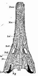 Keywords: Архег2.jpg Че еп а хегозав а - Skull of arhehosavr К Циттель 1913 1892 Г фон ее - G fon Meer PD-old Archegosauridae