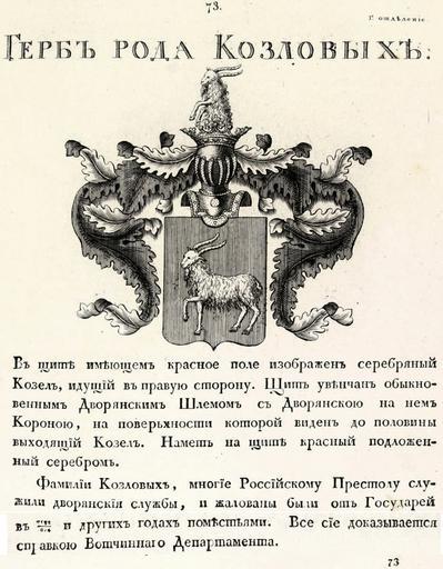 Keywords: Герб рода Козловых 2.jpg ru Ð“ÐµÑ Ð± Ñ Ð¾Ð´Ð° Козловых Ð²Ñ‚Ð¾Ñ Ð¾Ð¹ http //gerbovnik ru Author 1807-01-23 PD-old-100 Coats of arms of Russian noble families - K Obschij gerbovnik dvoryanskikh rodov Rossii House of Kozlov Goats in heraldry |
