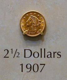 | Keywords: 2.5 Dollars, United States, 1907 - National Museum of American History - DSC00297.jpg en Exhibit in the National Museum of American History Washington DC USA Photography was permitted in the museum without restriction 2015-03-27 11 41 01 own Daderot other versions cc-zero Coins in the National Museum of American History Quarter Eagle United States | ||||