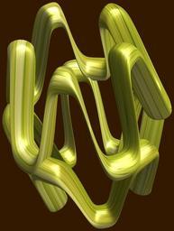 | Keywords: mathematica 3d cg parametricplot3d texture torus 輪環 りんかん ドーナツ どーなつ 五芒星 ごぼうせい 五光星 ごこうせい 五稜星 ごりょうせい code program algorithm コード プログラム アルゴリズム pentagram geometric sculpture geometricsculpture shape geometry sculpture mapping テクスチャ マッピング 模様 もよう abstract 抽象 ちゅうしょう アブストラクト design pattern デザイン パターン graphic グラフィック グラフィクス structure 意匠 構造 symmetry 対称性 たいしょうせい シンメトリー 対称 たいしょう algorithm コード indoor black background a = 5; (* center hole size *) b = 5; (* penta-torus *) c = -9; (* distance from the center of rotation *) d = 2; (* number of torus *) h = 4; (* height of a torus *) SetOptions[ParametricPlot3D, PlotRange -> Full, Mesh -> None, Boxed -> False, Axes -> False, PlotPoints -> 400, ImageSize -> 3000, Background -> Darker[Orange, 0.8], PlotStyle -> Directive[Specularity[White, 30], Texture[Import["D:/tmp/71.jpg"]]], TextureCoordinateFunction -> ({#4 + #5, #5 / Pi} &), Lighting -> "Neutral"]; f[v_] := Sin[2 Sin[Sin[Sin[v]]]]; x = (a - Cos[t] - f[b s]) Cos[s]; y = (a - Cos[t] - f[b s]) Sin[s]; z = (a - Sin[t] - h f[b s]) + c; rot = Table[{x, y, z}.RotationMatrix[2 i Pi/d, {1, 1, 0}], {i, d}]; ParametricPlot3D[rot, {t, 0, 2 Pi}, {s, 0, 2 Pi}] (*--- The Texture is this: www.flickr.com/photos/tanaka_juuyoh/5239255695/ *) a = 5; (* center hole size *) b = 5; (* penta-torus *) c = -9; (* distance from the center of rotation *) d = 2; (* number of torus *) h = 4; (* height of a torus *) SetOptions[ParametricPlot3D, PlotRange -> Full, Mesh -> None, Boxed -> False, Axes -> False, PlotPoints -> 400, ImageSize -> 3000, Background -> Darker[Orange, 0.8], PlotStyle -> Directive[Specularity[White, 30], Texture[Import["D:/tmp/71.jpg"]]], TextureCoordinateFunction -> ({#4 + #5, #5 / Pi} &), Lighting -> "Neutral"]; f[v_] := Sin[2 Sin[Sin[Sin[v]]]]; x = (a - Cos[t] - f[b s]) Cos[s]; y = (a - Cos[t] - f[b s]) Sin[s]; z = (a - Sin[t] - h f[b s]) + c; rot = Table[{x, y, z}.RotationMatrix[2 i Pi/d, {1, 1, 0}], {i, d}]; ParametricPlot3D[rot, {t, 0, 2 Pi}, {s, 0, 2 Pi}] (*--- The Texture is this: www.flickr.com/photos/tanaka_juuyoh/5239255695/ *) |