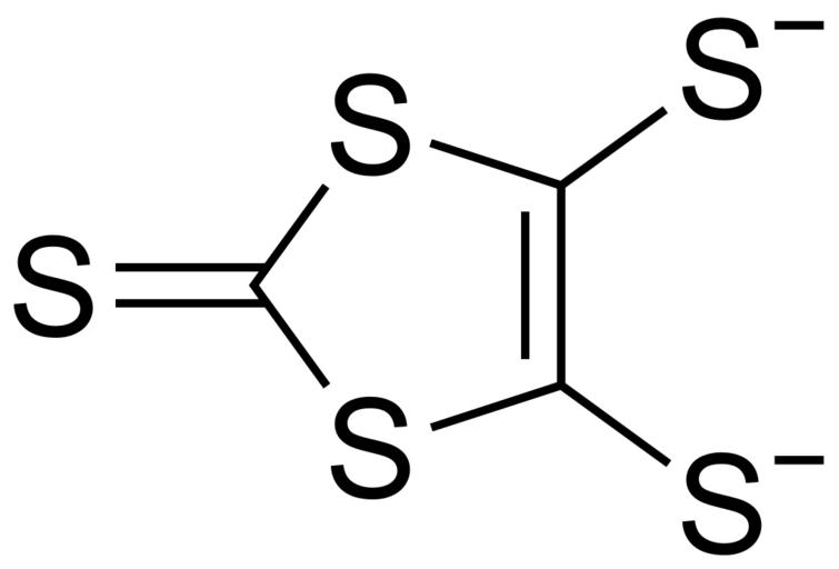 Keywords: 2-thioxo-1,3-dithiole-4,5-bis(thiolate) 200.svg validSVG Structure of 2-thioxo-1 3-dithiole-4 5-bis thiolate Own 2014-04-12 Emeldir <span class signature-talk >talk</span> PD-chem Thiocarbonyl compounds Thiolates Dithiolanes Anions