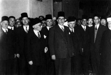 | Keywords: 30الرئيس القوتلي في القاهرة أثناء حرب فلسطين عام 1948.jpg ar من اليمين مفتي القدس الحاج أمين الحسيني - أمين عام جامعة الدول العربية عبد الرحمن عزام - نائب رئيس البرلمان السوري محمد بك العايش - رئيس وزراء لبنان رياض الصلح - الرئيس شكري القوتلي - وزير الخارجية جميل مردم بك - 2013-12-19 01 26 13 www syrianhistory com موقع التاريخ السوري cc-by-sa-3 0 PD-Syria Mohammed Alayiesh Government ministers of Syria | ||||