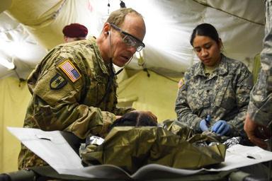 | Keywords: 212th combat support hospital 212thcombatsupporthospital 212th csh 212thcsh 30th medical brigade 30thmedicalbrigade 421st mmb 421stmmb 421st multifunctional medical battalion 421stmultifunctionalmedicalbattalion medshock bundeswehr germany mccully barracks mccullybarracks medical nato role 1 role1 role 2 role2 training people Maj. Paul Masters, 212th Combat Support Hospital nurse, assess a role player casualty during 30th Medical Brigade's MEDSHOCK exercise at Finthen LTA, Germany on Jan. 27, 2016. Exercises like these help test medical interoperability between NATO partnered nations (U.S. Army photo by Capt. Jeku Arce, 30th Medical Brigade Public Affairs/released). Maj. Paul Masters, 212th Combat Support Hospital nurse, assess a role player casualty during 30th Medical Brigade's MEDSHOCK exercise at Finthen LTA, Germany on Jan. 27, 2016. Exercises like these help test medical interoperability between NATO partnered nations (U.S. Army photo by Capt. Jeku Arce, 30th Medical Brigade Public Affairs/released). |