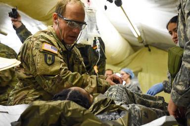 | Keywords: 212th combat support hospital 212thcombatsupporthospital 212th csh 212thcsh 30th medical brigade 30thmedicalbrigade 421st mmb 421stmmb 421st multifunctional medical battalion 421stmultifunctionalmedicalbattalion medshock bundeswehr germany mccully barracks mccullybarracks medical nato role 1 role1 role 2 role2 training people Maj. Paul Masters, 212th Combat Support Hospital nurse, assess a role player casualty during 30th Medical Brigade's MEDSHOCK exercise at Finthen LTA, Germany on Jan. 27, 2016. Exercises like these help test medical interoperability between NATO partnered nations (U.S. Army photo by Capt. Jeku Arce, 30th Medical Brigade Public Affairs/released). Maj. Paul Masters, 212th Combat Support Hospital nurse, assess a role player casualty during 30th Medical Brigade's MEDSHOCK exercise at Finthen LTA, Germany on Jan. 27, 2016. Exercises like these help test medical interoperability between NATO partnered nations (U.S. Army photo by Capt. Jeku Arce, 30th Medical Brigade Public Affairs/released). |