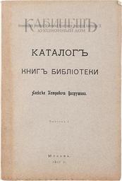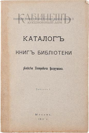 Keywords: Архив аукциона №15(55) Лот 246 Каталог книг библиотеки Алексея Петровича Бахрушина. Выпуск I. Выпуск II. Выпуск дополнительный - Книги на иностранных языках. М., Типо-Литография Торгового Дома А.П. Коркин, 1911-1912. Формат издания: 27 х 18 см. Выпуск I – [1], 1 портрет, [2], 1 л. ил., 1 - 189 с. Выпуск II – 191 - 382 с. Выпуск «Книги на ин. языках» - [2], 1 л.ил., 78 с. Экземпляр в издательских бумажных обложках, в очень хорошем состоянии, незначительный надрыв в верхней части корешка в дополнительном выпуске, в выпуске I подклеена обложка. Предварительная оценка: 13 000 – 16 000 р. <a href="http://www.kabinet-auktion.com/auction/books15/246/" rel="nofollow">www.kabinet-auktion.com/auction/books15/246/</a> 1912 1911 каталог аукцион библиотеканапродажу бахрушинап
