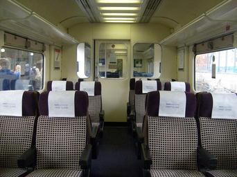 | Keywords: 317340 C TCO First Class Interior.JPG en Interior of refreshed First Class cabin aboard First Capital Connect Class 317 TCO vehicle New carpets retrimmed seats and new daldo side panels own Peter Skuce British Rail Class 317s at London King's Cross railway station British Rail Class 317s of First Capital Connect 317340 British Rail Class 317s in First Capital Connect Urban Lights livery 317340 British Rail Class 317s on the East Coast Main Line 317340 Trains of First Capital Connect on the East Coast Main Line 317340 Train interiors of British Rail Class 317s 317340 Train interiors of First Capital Connect 317340 First class train interiors of the United Kingdom 317340 |