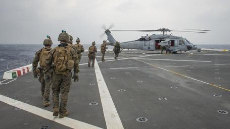 | Keywords: 31st MEU Marines board MH-60s Seahawk 150310-N-EI510-019.jpg en 150310-N-EI510-019 EAST CHINA SEA Mar 10 2015 Marines attached to 31st Marine Expeditionary Unit MEU board an MH-60s Seahawk helicopter attached to the Island Knights of Helicopter Sea Combat Squadron HMS 25 aboard flight deck of the forward deployed amphibious transport dock ship USS Green Bay LPD 20 Green Bay is part of the Bonhomme Richard Amphibious Ready Group ARG and along with the embarked 31st Marine Expeditionary Unit 31st MEU is currently conducting an Amphibious Integration Training AIT exercise U S Navy photo by Mass Communication Specialist 3rd Class Scott Barnes/Released 2015-03-10 Seaman Scott Barnes https //www dvidshub net/image/1809847 150310-N-EI510-019 2015-03-11 21 23 EAST CHINA SEA USS GREEN BAY AT SEA PD-USGov-Military-Navy MH-60S Seahawk 31st Marine Expeditionary Unit USS Green Bay LPD-20 Images from DoD uploaded by Fæ |