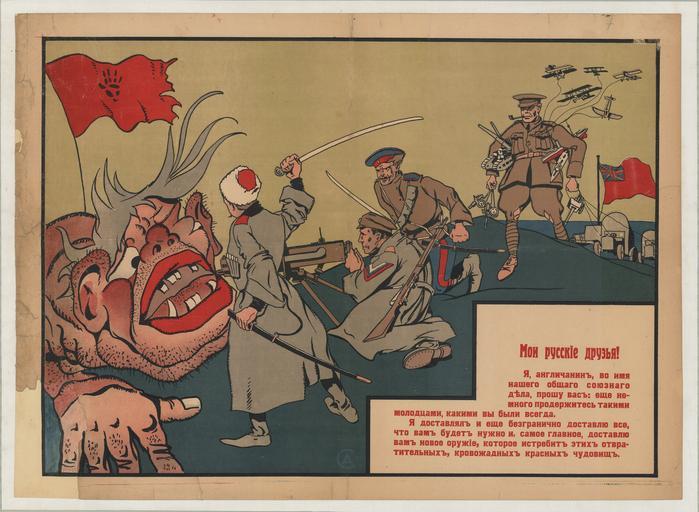 | Keywords: 32 Sammlung Eybl Russland. Anonym. Мои русские друзья. (Meine russischen Freunde). 1919. 68 x 86 cm. (Slg.Nr. 1693).jpg de Russland Anonym ои усские д узья Meine russischen Freunde 1919 68 x 86 cm Slg Nr 1693 Der Brite verspricht seinen russischen Freunden weiter gegen diese rote Bestie zu helfen und sie mit Waffen zu unterstützen Zu sehen sind am Bild ein Kosak der Weißen ein tschechischer Legionär am Maschinengewehr sowie zwei britische Soldaten die von ihren Schiffen Rüstungsgüter heranschaffen Trotz der westlichen Unterstützung unterlag die zerstrittene eitle und egoistische russische Opposition im Bürgerkrieg der Roten Armee Trotzkis und Lenins Sammlung Eybl Plakatmuseum Wien 2009-07-30 16 02 44 A Erhardt Credit line Eybl Plakatmuseum Wien/Wikimedia Commons CC-BY-SA-4 0 wiki Sammlung Eybl Plakatmuseum Wien PD-old World War I posters of Russia Plakatmuseum Wien Eybl Collection 32 Sammlung Eybl Russland. Anonym. Мои русские друзья. (Meine russischen Freunde). 1917. 68 x 86 cm. (Slg.Nr. 1693).jpg de Russland Anonym ои усские д узья Meine russischen Freunde 1917 68 x 86 cm Slg Nr 1693 Der Brite verspricht seinen russischen Freunden weiter gegen diese rote Bestie zu helfen und sie mit Waffen zu unterstützen Zu sehen sind am Bild ein Kosak der Weißen ein tschechischer Legionär am Maschinengewehr sowie zwei britische Soldaten die von ihren Schiffen Rüstungsgüter heranschaffen Trotz der westlichen Unterstützung unterlag die zerstrittene eitle und egoistische russische Opposition im Bürgerkrieg der Roten Armee Trotzkis und Lenins en Russia Anonymous ои усские д узья My Russian friends 1917 68 x 86 cm Slg Nr 1693 The Briton promises his Russian Friends against this red beast to help and to assist them with weapons You can see the image of a Cossack whites a Czech legionnaire at the machine gun and two British soldiers who bring along from their ships armaments Despite the western support the fractious vain and selfish Russian opposition was defeated in the civil war of the Red Army of Trotsky and Lenin Sammlung Eybl Plakatmuseum Wien 2009-07-30 16 02 44 A Erhardt Credit line Eybl Plakatmuseum Wien/Wikimedia Commons CC-BY-SA-4 0 wiki Sammlung Eybl Plakatmuseum Wien PD-old February Revolution Russia Plakatmuseum Wien Eybl Collection Quality images by Hubertl Quality images by Hubertl 2016 Lubok QualityImage |