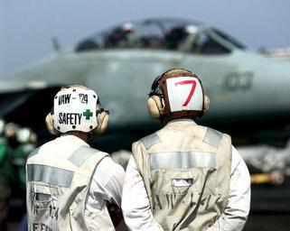 | Keywords: allied forces cd alliedforcescd dd-sd-00-02721 ddsd0002721 adriatic sea adriaticsea depth of field 330-CFD-DD-SD-00-02721: Operation Allied Force, NATO bombing of Yugoslavia, March to June 1999. Airwing safety officers overlook an F-14 "Tomcat" being attached to a catapult (not shown) on board the USS Theodore Roosevelt (CVN 71). The Theodore Roosevelt and its Airwing are deployed to the Adriatic in support of the NATO-led Operation Allied Force, 4/12/1999 (OPA-NARA II-8/15/2015). 330-CFD-DD-SD-00-02721: Operation Allied Force, NATO bombing of Yugoslavia, March to June 1999. Airwing safety officers overlook an F-14 "Tomcat" being attached to a catapult (not shown) on board the USS Theodore Roosevelt (CVN 71). The Theodore Roosevelt and its Airwing are deployed to the Adriatic in support of the NATO-led Operation Allied Force, 4/12/1999 (OPA-NARA II-8/15/2015). |