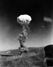 | Keywords: blackandwhite monochrome surreal outdoor black and white 330-PS-3256 (A 6320.A.C.): A mushroom storm cloud rises from the Nevada desert following one of the recent test detonations. This photograph was made from a U.S. Air Force aircraft assigned to Air Force Special Weapons Center, Kirkland Air Force Base, New Mexico. In supporting Armed Forces Special Weapons Project as many as 40 specially equipped U.S. Air Force aircraft were utilized in direct support of the Atomic Energy Commission’s test program each time there are atomic tests at the Nevada Proving Ground. Photograph released March 16, 1953. (5/5/2015). 330-PS-3256 (A 6320.A.C.): A mushroom storm cloud rises from the Nevada desert following one of the recent test detonations. This photograph was made from a U.S. Air Force aircraft assigned to Air Force Special Weapons Center, Kirkland Air Force Base, New Mexico. In supporting Armed Forces Special Weapons Project as many as 40 specially equipped U.S. Air Force aircraft were utilized in direct support of the Atomic Energy Commission’s test program each time there are atomic tests at the Nevada Proving Ground. Photograph released March 16, 1953. (5/5/2015). |