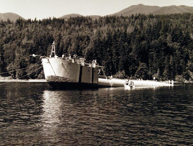 | Keywords: outdoor vehicle boat 330-PSA-207-62 (USN 1061428): Floating Instrument Platform (FLIP). Bow view of FLIP as it is in the horizontal position. Photograph released August 7, 1962. Master caption: A new type of oceanographic research vessel – Floating Instrument Platform (FLIP) – is undergoing operational tests by the U.S. Navy in Dabob Bay, near Seattle, Washington. FLIP has been constructed for the Marine Physical Laboratory of Scrupps Institution of Oceanography under contract to the Office of Naval Research. The craft can literally flip from a horizontal to a vertical position while at sea. FLIP is flipped into the vertical position by flooding its long aft section with sea water. Only its “four story” bow section remains above the water. To return the vessel to a horizontal position, high pressure air blows the water out of the submerged section. FLIP will be used for studies of wave motion, marine biology, internal waves, sound waves, and other phenomena. The vessel has accommodation for four people and can carry enough supplies to last for about two weeks. In the vertical position, the research laboratories, living quarters, and engine room are above the water. Two diesel engines supply electrical power for air conditioning and other miscellaneous electrical equipment. Two waterfront tubes permit the crew to descent to 150 feet below the water. Upon completion of the tests in Dabob Bay, FLIP will be towed to San Diego, California, to begin its sea voyages. (10/6/2015). 330-PSA-207-62 (USN 1061428): Floating Instrument Platform (FLIP). Bow view of FLIP as it is in the horizontal position. Photograph released August 7, 1962. Master caption: A new type of oceanographic research vessel – Floating Instrument Platform (FLIP) – is undergoing operational tests by the U.S. Navy in Dabob Bay, near Seattle, Washington. FLIP has been constructed for the Marine Physical Laboratory of Scrupps Institution of Oceanography under contract to the Office of Naval Research. The craft can literally flip from a horizontal to a vertical position while at sea. FLIP is flipped into the vertical position by flooding its long aft section with sea water. Only its “four story” bow section remains above the water. To return the vessel to a horizontal position, high pressure air blows the water out of the submerged section. FLIP will be used for studies of wave motion, marine biology, internal waves, sound waves, and other phenomena. The vessel has accommodation for four people and can carry enough supplies to last for about two weeks. In the vertical position, the research laboratories, living quarters, and engine room are above the water. Two diesel engines supply electrical power for air conditioning and other miscellaneous electrical equipment. Two waterfront tubes permit the crew to descent to 150 feet below the water. Upon completion of the tests in Dabob Bay, FLIP will be towed to San Diego, California, to begin its sea voyages. (10/6/2015). |