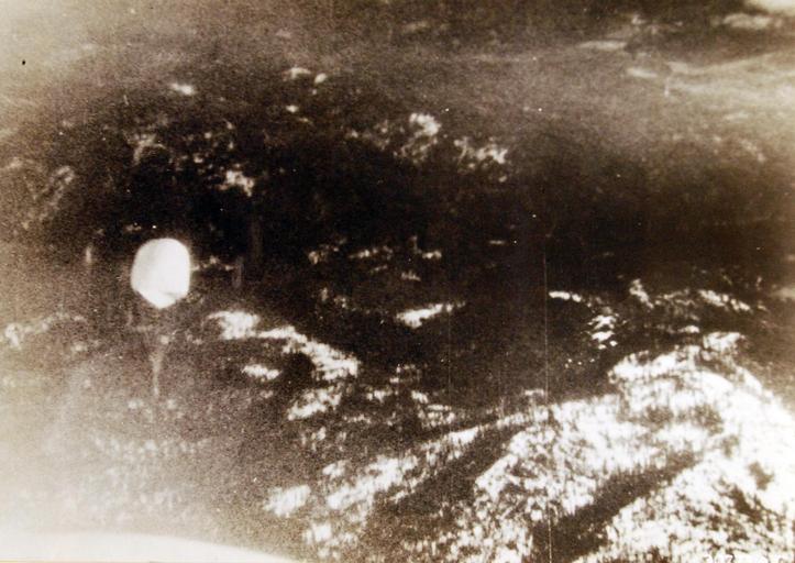 | Keywords: monochrome 342-FH-3B23432: Japanese balloon, Fu-Go, left center, in flight prior to landing at an unknown location. Received February 8, 1946 from HQ. Fourth Air Force, San Francisco, California. U.S. Army Air Corps (Air Force) photograph, now in the collections of the National Archives. (5/26/2015). 342-FH-3B23432: Japanese balloon, Fu-Go, left center, in flight prior to landing at an unknown location. Received February 8, 1946 from HQ. Fourth Air Force, San Francisco, California. U.S. Army Air Corps (Air Force) photograph, now in the collections of the National Archives. (5/26/2015). |