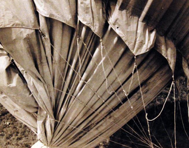 | Keywords: texture 342-FH-3B23441c: Japanese balloon, Fu-Go, partially inflated envelope showing shroud line attachment to caternary band. Received February 8, 1946 from HQ. Fourth Air Force, San Francisco, California. U.S. Army Air Corps (Air Force) photograph, now in the collections of the National Archives. (5/26/2015). 342-FH-3B23441c: Japanese balloon, Fu-Go, partially inflated envelope showing shroud line attachment to caternary band. Received February 8, 1946 from HQ. Fourth Air Force, San Francisco, California. U.S. Army Air Corps (Air Force) photograph, now in the collections of the National Archives. (5/26/2015). |