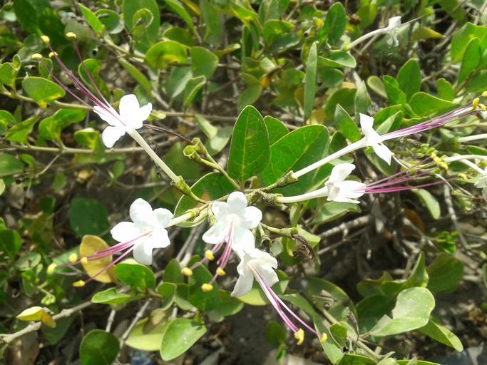 Keywords: சங்கம்3.jpg en Botanical name Clerodendrum inerme Common names Indian privet ;Wild Jasmine ; Sorcerers Bush Tamil name Sangam சங்கம் conch Branches are used for making traditional fish traps;Leaf juice cures stomach ache ;plant is useful in treatment of ringworm and for intermittent fevers; Leaf poultices are applied on swellings ; Medicinal drink is given to heal just given birth - womb; Researches say that Clerodendrum inerme are effective in controlling bacterial pathogens; Analgesic and antipyretic effects of aqueous extract from this herb are found out Photo - Another view of Sorcerers Bush ta சங்கம் ப ச்சங்கு அஞ்சலி எனவும் அறியப்படும் ; குறிஞ்சிப்பாட்டில் கபிலர் குறிப்பிட்ட சங்கம் என்பது இதுதான் என்றும் சிலர் எழுதியுள்ளனர் இலை ஒற்றடம் வ க்கங்களுக்கு நல்லது;பிள்ளை பெற்ற வயிற்றுக்குப் பலம் அளிக்க இது மூலிகையாகும் பாக்ட ரியாக் கிருமிகளைக் கொல்ல வல்லது இம் மூலிகை என ஆய்வில் கண்டுபிடித்துள்ளனர் ;இலைச் சாறு வயிற்றுவலி மருந்து படம் - சங்கம் தாவரத்தின் இன்னொரு தோற்றம் hi संकुप्प Sankuppi sa कुंडल Kundali own Dr S Soundarapandian 2014 - 05 - 28 Own field work Shot in Chennai Tamilnadu India 4 5 kms off sea-shore ; Latitude-13°02'20 N ; Longitude- 80°13'43 E ; Elevation from sea level - 6 7 m Volkameria inermis Cc-zero |
