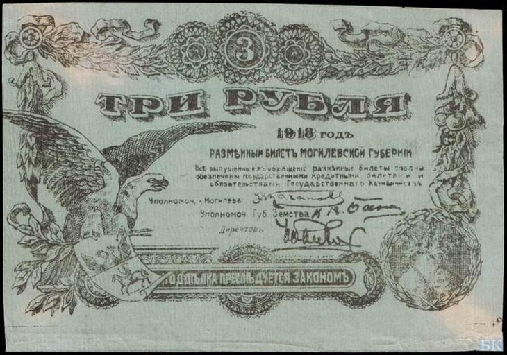 | Keywords: 3 рубля Могилевской губернии 1918.jpg 3 убля огилёвской губе нии 1918 аве с С исованы с т ёх одесских ублей 1917 года - см Одесский убль Transferred from http //ru wikipedia org ru wikipedia<br/> Original text http //www bonistika net/ 1918 год<br/> 2007 09 22 original upload date огилевская губе ния Original uploader was Vizu at http //ru wikipedia org ru wikipedia PD-RU-EXEMPT PD-old-70 original upload log page ru wikipedia 3_ D1 80 D1 83 D0 B1 D0 BB D1 8F_ D0 9C D0 BE D0 B3 D0 B8 D0 BB D0 B5 D0 B2 D1 81 D0 BA D0 BE D0 B9_ D0 B3 D1 83 D0 B1 D0 B5 D1 80 D0 BD D0 B8 D0 B8_1918 jpg 2007-09-22 03 05 Vizu 760×533× 91032 bytes <nowiki> Описание Авто В емя создания Источник </nowiki> Banknotes of Odessa 1917 1919 History of Mahilioŭ Mahilioŭ Governorate Eagles on banknotes Banknotes with a face value of 3 |