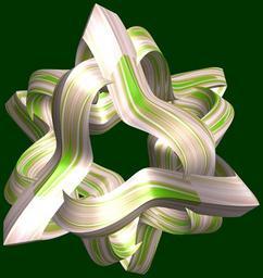 | Keywords: mathematica 3d cg parametricplot3d texture torus 輪環 りんかん ドーナツ どーなつ 六芒星 ろくぼうせい 六光星 ろくこうせい 六稜星 ろくりょうせい program プログラム code コード algorithm コード アルゴリズム hexagram geometric sculpture geometricsculpture shape geometry sculpture mapping テクスチャ マッピング 模様 もよう design pattern デザイン パターン graphic グラフィック グラフィクス structure 意匠 構造 symmetry 対称性 たいしょうせい シンメトリー 対称 たいしょう algorithm black background bright surreal photo border serene SetOptions[ParametricPlot3D, PlotRange -> Full, Mesh -> None, Boxed -> False, Axes -> None, PlotPoints -> 400, ImageSize -> 3000, Background -> Darker[Green, 0.8], PlotStyle -> Directive[Specularity[White, 30], Texture[Import["D:/tmp/862.jpg"]]], TextureCoordinateFunction -> ({#4 + #5, #5/Pi} &), Lighting -> "Neutral"]; a = 5; (* center hole size of a torus *) b = 6; (* hexa-torus *) c = 0; (* distance from the center of rotation *) d = 3; (* number of torus *) f[v_] := TriangleWave[{-1, 1}, v/(2 Pi)]; g[v_] := TriangleWave[{-1, 1}, v/(2 Pi) + 1/4]; x = (a - g[t] - Sin[b s]) g[s + Pi/(2 b)] + c; y = f[t] + c; z = (a - g[t] - Sin[b s]) f[s + Pi/(2 b)] + c; rot = Table[{x, y, z}.RotationMatrix[2 i Pi/d, {1, 1, 1}], {i, d}]; ParametricPlot3D[rot, {t, 0, 2 Pi}, {s, 0, 2 Pi}] (* --- The Texture is another color version of this: www.flickr.com/photos/tanaka_juuyoh/5412528282 *) SetOptions[ParametricPlot3D, PlotRange -> Full, Mesh -> None, Boxed -> False, Axes -> None, PlotPoints -> 400, ImageSize -> 3000, Background -> Darker[Green, 0.8], PlotStyle -> Directive[Specularity[White, 30], Texture[Import["D:/tmp/862.jpg"]]], TextureCoordinateFunction -> ({#4 + #5, #5/Pi} &), Lighting -> "Neutral"]; a = 5; (* center hole size of a torus *) b = 6; (* hexa-torus *) c = 0; (* distance from the center of rotation *) d = 3; (* number of torus *) f[v_] := TriangleWave[{-1, 1}, v/(2 Pi)]; g[v_] := TriangleWave[{-1, 1}, v/(2 Pi) + 1/4]; x = (a - g[t] - Sin[b s]) g[s + Pi/(2 b)] + c; y = f[t] + c; z = (a - g[t] - Sin[b s]) f[s + Pi/(2 b)] + c; rot = Table[{x, y, z}.RotationMatrix[2 i Pi/d, {1, 1, 1}], {i, d}]; ParametricPlot3D[rot, {t, 0, 2 Pi}, {s, 0, 2 Pi}] (* --- The Texture is another color version of this: www.flickr.com/photos/tanaka_juuyoh/5412528282 *) |