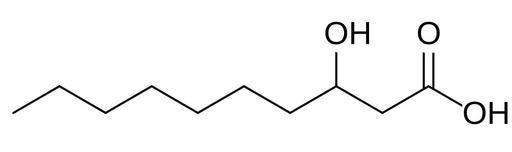Keywords: 3-hydroxydecanoic acid.svg Chemical structure of 3-hydroxydecanoic acid 3-hydroxycapric acid myrmicacin Own 12 45 18 June 2014 UTC Ed Edgar181 Beta hydroxy acids Saturated fatty acids