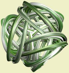 | Keywords: mathematica 3d cg parametricplot3d texture torus code program algorithm プログラム コード アルゴリズム 輪環 りんかん ドーナツ どーなつ トーラス とーらす knot 結び目 むすびめ mapping テクスチャ マッピング 模様 もよう design pattern デザイン パターン graphic グラフィック グラフィクス structure 意匠 構造 symmetry 対称性 たいしょうせい シンメトリー 対称 たいしょう white background a = 10; (* center hole size of a torus *) b1 = 5;(* the number of angles *) b2 = 4;(* the number of waves *) b3 = 6; (* the number of knots *) c = 8; (* distance from the center of rotation *) d = 3; (* the number of tori *) h1 = 2; (* width of a torus *) h2 = 2; (* width of a torus *) h3 = 7; (* height of cross *) SetOptions[ParametricPlot3D, PlotRange -> Full, Mesh -> None, Boxed -> False, Axes -> None, PlotPoints -> 500, ImageSize -> 3000, Background -> RGBColor[{240, 240, 200}/255], PlotStyle -> Directive[Specularity[White, 50], Texture[Import["D:/tmp/911.jpg"]]], TextureCoordinateFunction -> ({#4, #5 /Pi} &), Lighting -> "Neutral"]; x = (a - h1 Cos[t] + h2 Sin[b1 s]) Cos[b3 s] + c; y = (a - h1 Cos[t] + h2 Sin[b1 s]) Sin[b3 s] + c; z = h3 Cos[b1 s] + Sin[b2 t] + c; rm = Table[{x, y, z}.RotationMatrix[2 i Pi/d, {1, 1, 0}], {i, d}]; ParametricPlot3D[rm, {t, 0, 2 Pi}, {s, 0, 2 Pi}] (*--- The Texture *) a = 10; (* center hole size of a torus *) b1 = 5;(* the number of angles *) b2 = 4;(* the number of waves *) b3 = 6; (* the number of knots *) c = 8; (* distance from the center of rotation *) d = 3; (* the number of tori *) h1 = 2; (* width of a torus *) h2 = 2; (* width of a torus *) h3 = 7; (* height of cross *) SetOptions[ParametricPlot3D, PlotRange -> Full, Mesh -> None, Boxed -> False, Axes -> None, PlotPoints -> 500, ImageSize -> 3000, Background -> RGBColor[{240, 240, 200}/255], PlotStyle -> Directive[Specularity[White, 50], Texture[Import["D:/tmp/911.jpg"]]], TextureCoordinateFunction -> ({#4, #5 /Pi} &), Lighting -> "Neutral"]; x = (a - h1 Cos[t] + h2 Sin[b1 s]) Cos[b3 s] + c; y = (a - h1 Cos[t] + h2 Sin[b1 s]) Sin[b3 s] + c; z = h3 Cos[b1 s] + Sin[b2 t] + c; rm = Table[{x, y, z}.RotationMatrix[2 i Pi/d, {1, 1, 0}], {i, d}]; ParametricPlot3D[rm, {t, 0, 2 Pi}, {s, 0, 2 Pi}] (*--- The Texture *) |