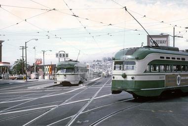| Keywords: san francisco sanfrancisco outdoor road vehicle Roger Puta took these on August 25, 1967 at the intersection of Market St. and Duboce Ave. in San Francisco. 1145, a K INGLESIDE EAST BAY TERMINAL car and 1113, a N JUDAH car turning onto Duboce Ave. from Market Street. Roger Puta took these on August 25, 1967 at the intersection of Market St. and Duboce Ave. in San Francisco. 1145, a K INGLESIDE EAST BAY TERMINAL car and 1113, a N JUDAH car turning onto Duboce Ave. from Market Street. | ||||